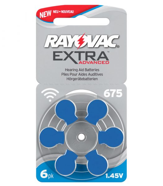 Plaquette de 6 piles auditives 675 Rayovac 0% mercure (Hg 0%)